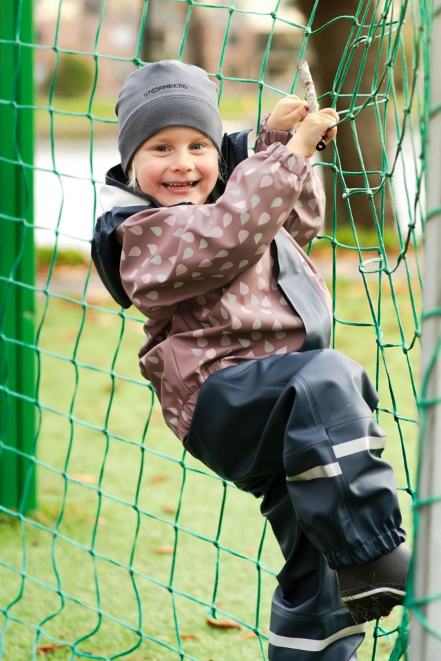 Stormflod regnjakke er vår toppmodell innen regntøy til barn, og er laget i solid og kraftig SuperProof-materiale. Dette er vårt beste regntøy som holder vannet ute også under ekstremvær. Stormflod har avtagbar hette og dråpeformede refleksdetaljer, og følger våre strenge retningslinjer for sikkert barnetøy. Stormflod regnjakke- og bukse ble kåret til best i test, i Foreldre & Barn sin store test av regntøy i 2019.