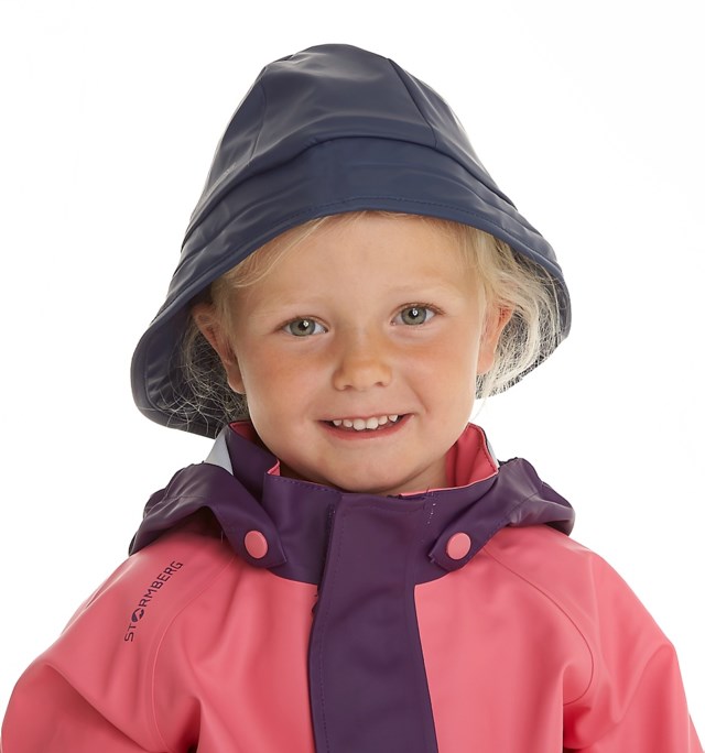 Fjordane sydvest er en fleecefôret sydvest med øre- og nakkeklaff som gjør at sydvesten sitter godt på barnets hode uten snøring rundt halsen.