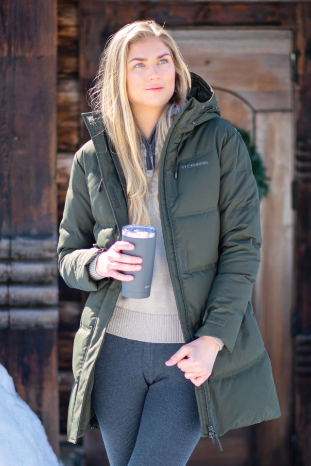 Modellen er 185 cm høy og har på seg str S. Parkasen er 90 cm lang i str S.- Høy isolasjonsevne